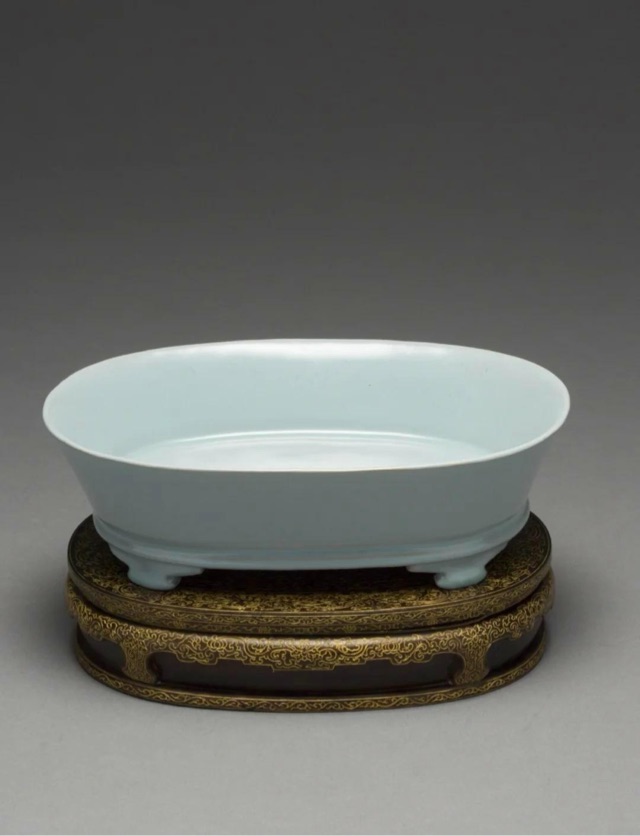 北宋汝窯天青無紋水仙盆,這件瓷器以其精致的工藝而著稱。汝窯是北宋五大名窯之一,以燒制青瓷聞名于世。這件水仙盆釉面純潔無紋片,溫潤素雅的色澤展現(xiàn)了宋人所追求的如雨過天晴般的寧靜開朗之美。汝窯瓷器傳世極少,而這件水仙盆更是其中的佼佼者,成為臺北故宮博物院的鎮(zhèn)館之寶之一。