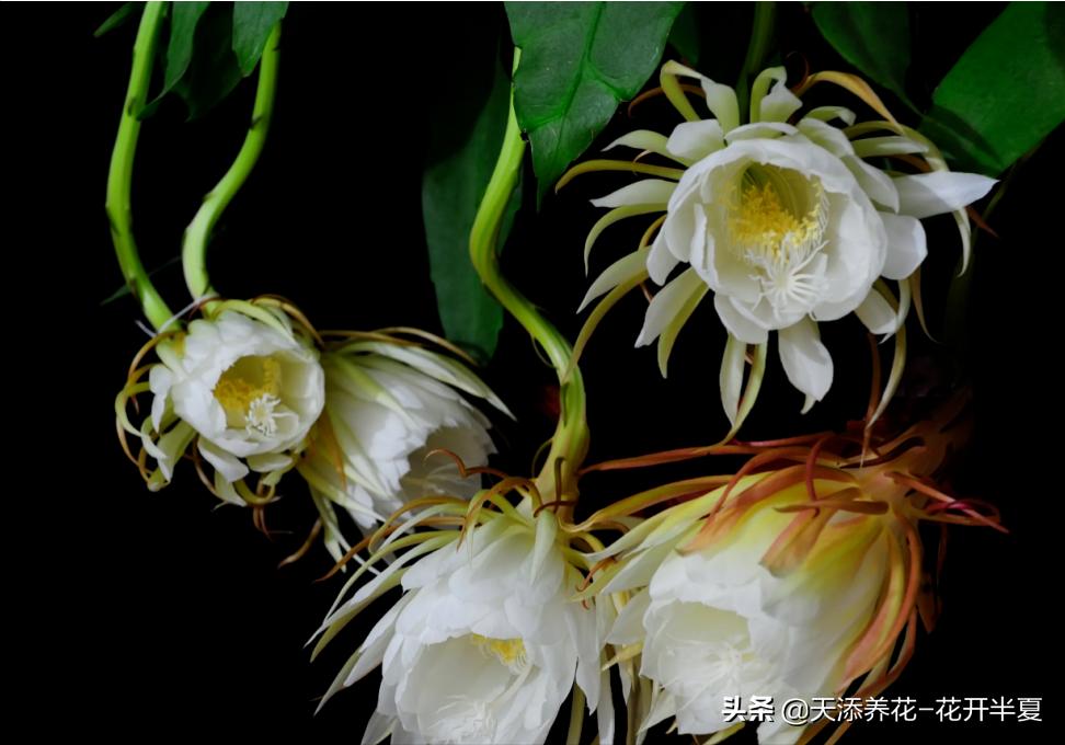 曇花一現(xiàn),只為韋陀。所以曇花又名韋陀花。也是因為曇花是在夕陽后見到韋陀。所以曇花都是夜間開放。