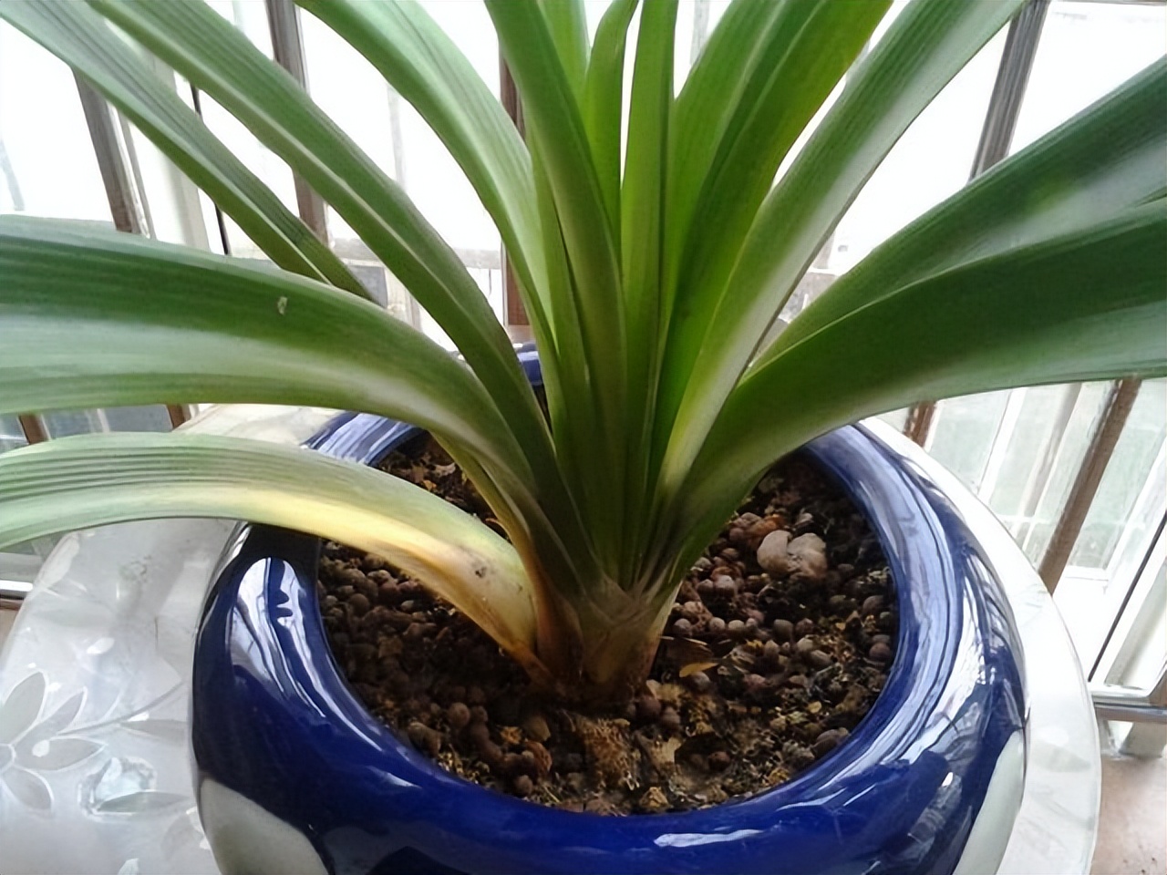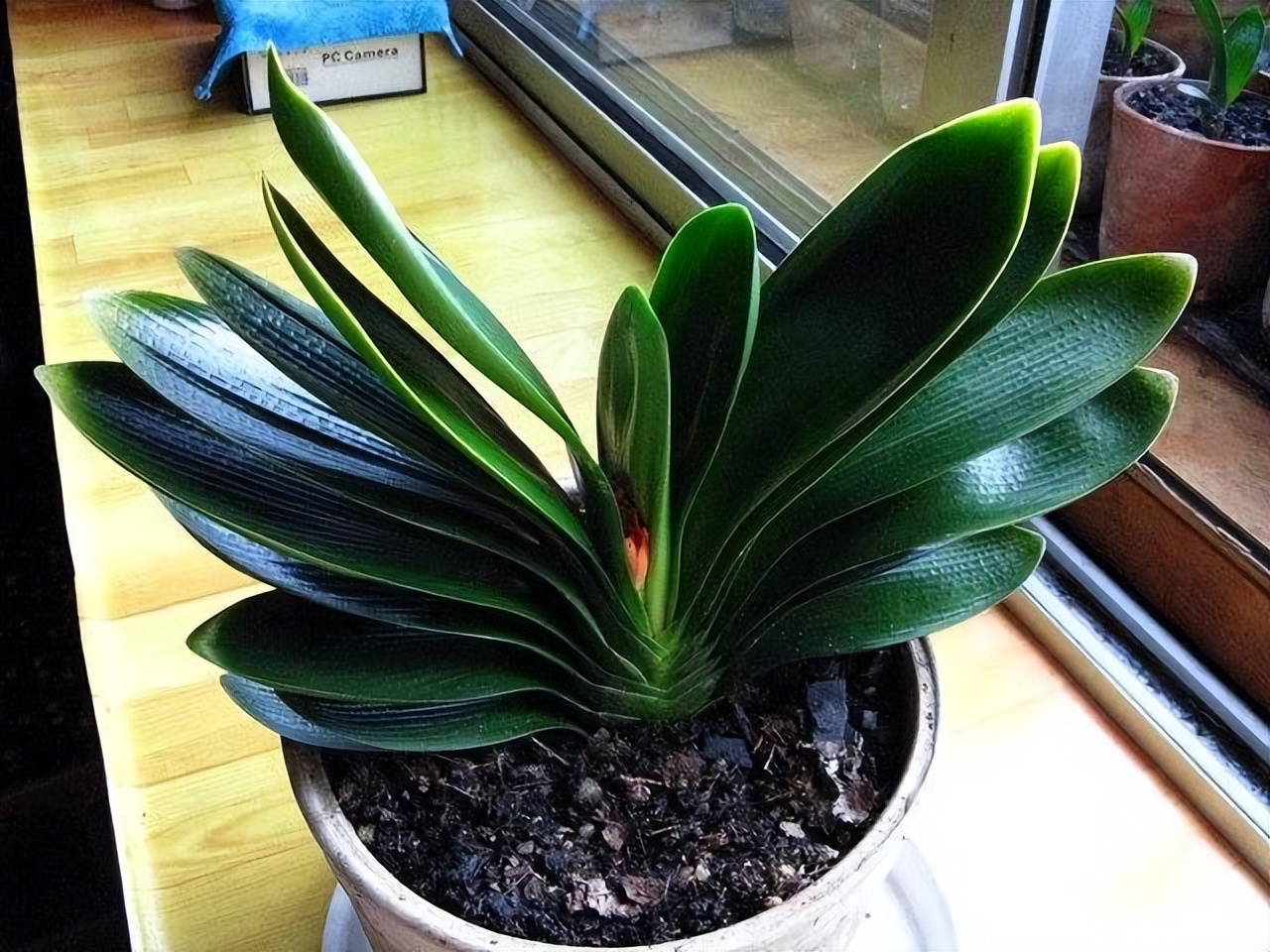 朋友家的君子蘭就隨意地放在窗臺上,四季如此。說來奇怪,雖然養(yǎng)得不咋地,重來沒開過花,葉片也被剪得只剩5、6片了,但一直沒養(yǎng)死了,看著真心疼。問他為什么要剪葉子。