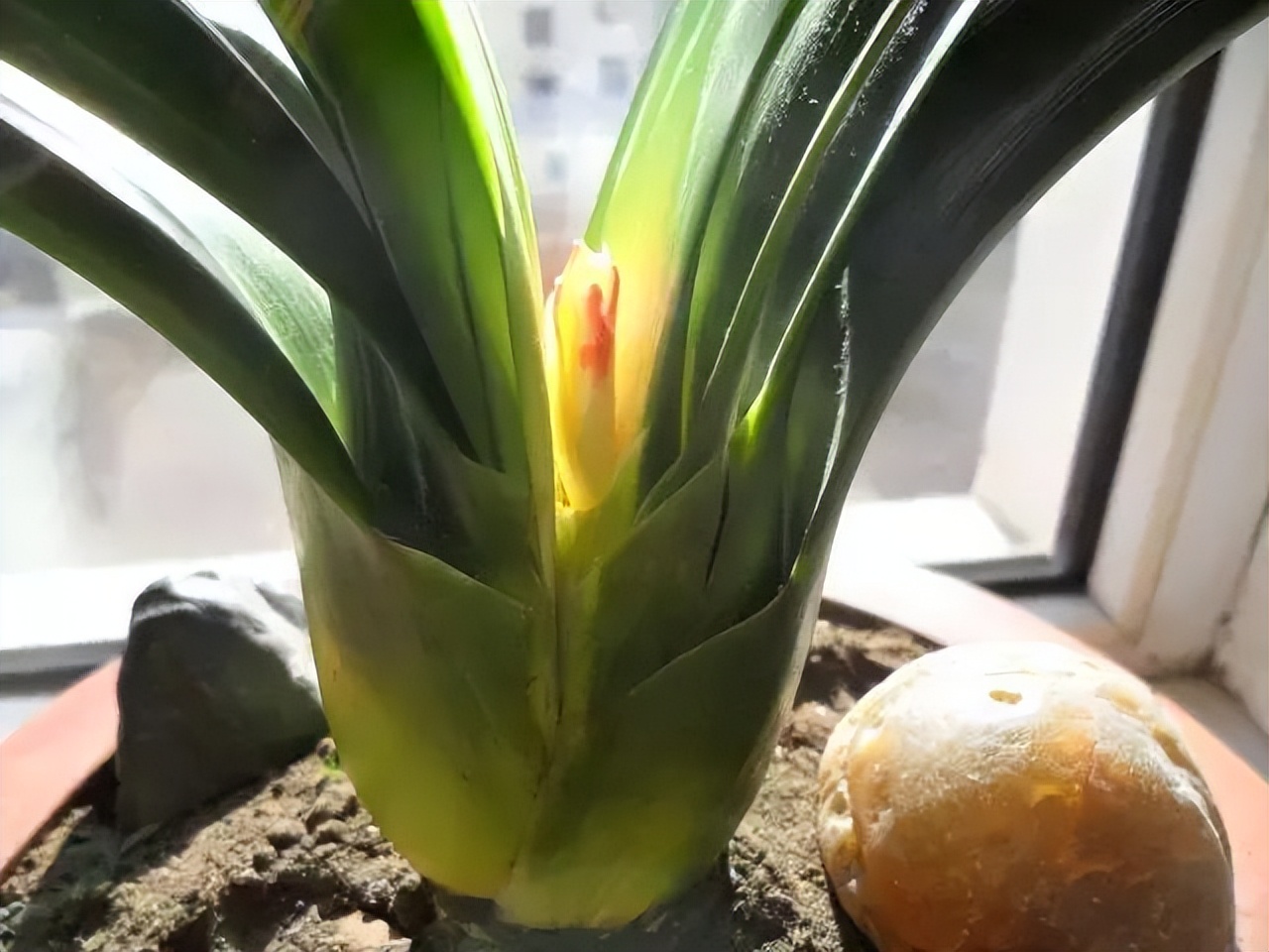 發(fā)現君子蘭出現黃葉,而且是從葉柄處開始黃起的,趕緊檢查下根系和盆土情況,多半是爛根了。我們先不要急著把葉片摘掉,而且及時觀察盆土,有沒有積水悶根的現象,如果不是很嚴重,及時移到窗臺上通風。