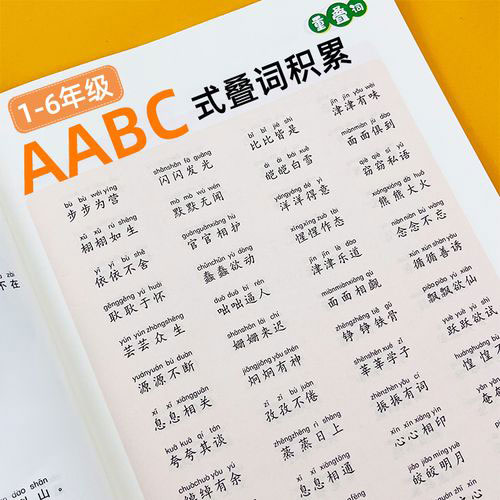 步步為營(yíng)、比比皆是、楚楚動(dòng)人、津津有味、栩栩如生、默默無(wú)聞、皚皚白雪、面面俱到